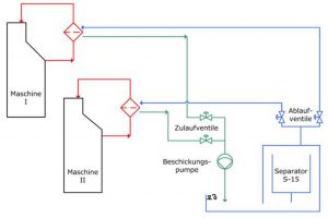 Egy dél -németországi ügyfélnél szürke öntvényből készült szivattyúházak és szeleptestek feldolgozása történik 2 megmunkálóközpontban. Ez a megmunkálás finom öntvény morzsalékot és grafitrészecskéket eredményez, amelyek szennyezik a használt hűtőolajat. A megmunkáló olajat néhány hét üzemelés után rendszeresen cserélni kellett, mivel a munkadarabok felületi minősége az olaj fokozódó szennyeződésével csökkent. Ezenkívül a hűtőolaj fekete elszíneződése miatt már nem lehetett látni a munkadarabokat a feldolgozógépek ablakain keresztül. A meglévő szűrőrendszer (vákuumos forgószűrővel, megemelt tartállyal) csak 50 μm szemcseméretig szűrte meg a részecskéket, ami azt jelenti, hogy az olajban lévő finomabb grafit részecskék koncentrálódtak.