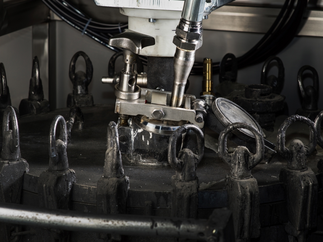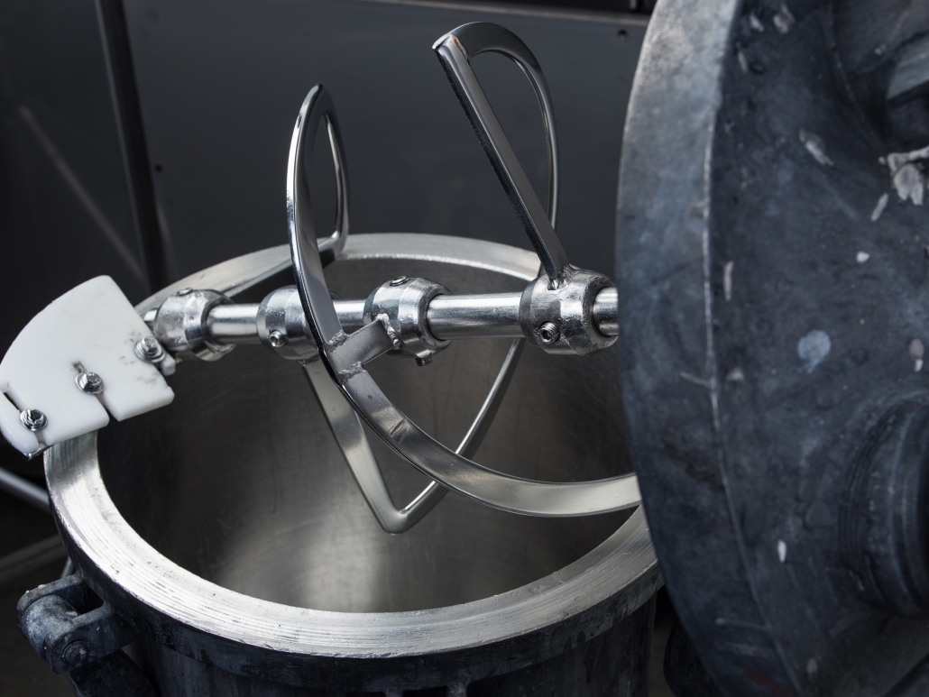 Ebben az esetben olyan keverőedényekről van szó, amikben kvarcot, gyantát, festéket és törött üveget kevernek. Később nagy nyomáson ebből a keverékből mesterséges kvarc kompozitot szekrényekre, csapokra és asztalokra. Annak érdekében, hogy eltávolítsuk az állhatatos, durva kvarc kompozit üledéket, nem csak egy speciális berendezést fejlesztettünk ki, hanem egy zárt rendszert is a diklórmetán szerves oldószer kezelésére.