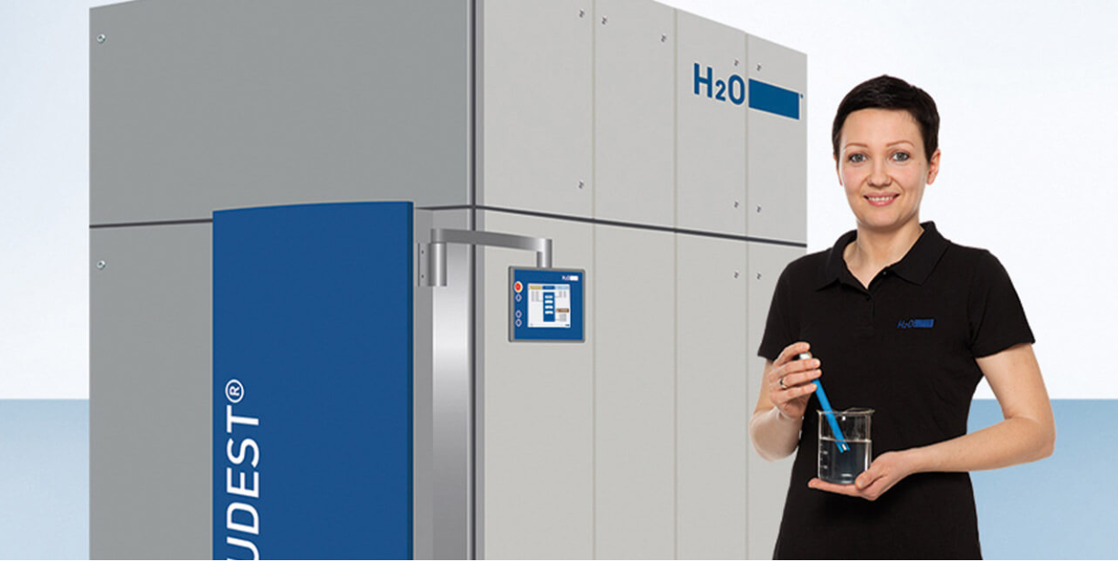 Ebből kifolyólag a Destcontrol regulátor nem a befolyó víz, hanem a desztillátum pH értékét méri. Ha megváltozik a pH érték, a regulátor közömbösítő hatóanyagot juttat közvetlenül a VACUDEST lepárlóba, kiegyensúlyozva az ott lezajló reakciókat. Ez biztosítja a desztillátum stabil minőségét – ideális az egyszerű ürítésre vagy újrahasználásra.