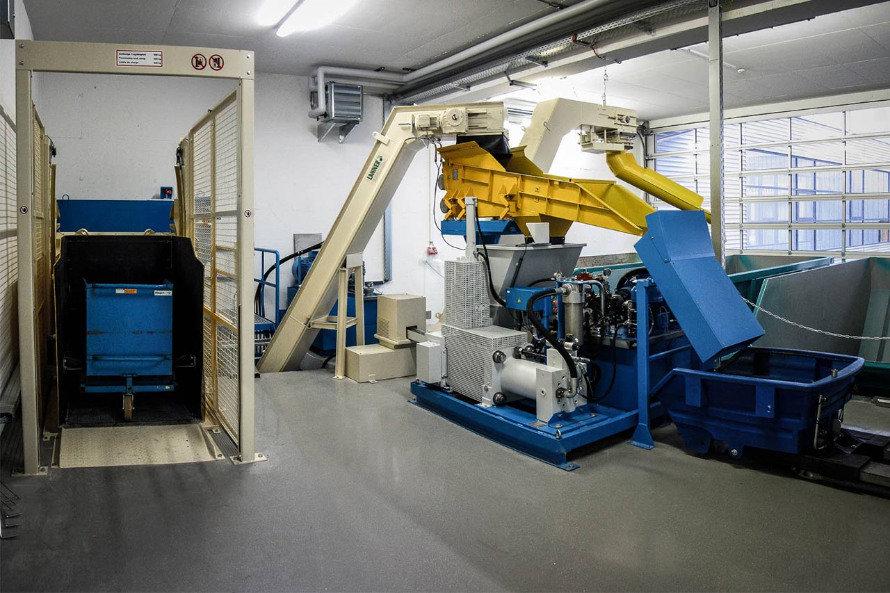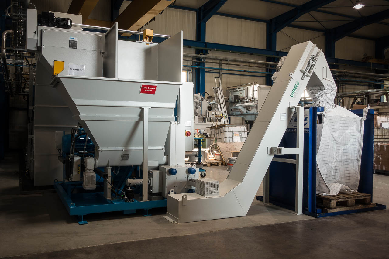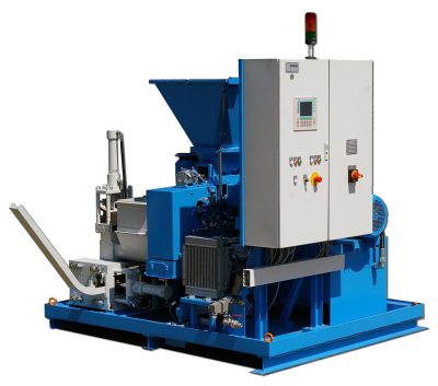 A hűtőfolyadékot tartalmazó forgács az adagológaratba kerül. Ezt az adagolócsiga meghatározott mennyiségben folyamatosan adagolja a préskamrába. Egy nagynyomású henger a forgácsot nagy szilárdságú briketté préseli, miközben a hűtőfolyadék kipréselődik.
